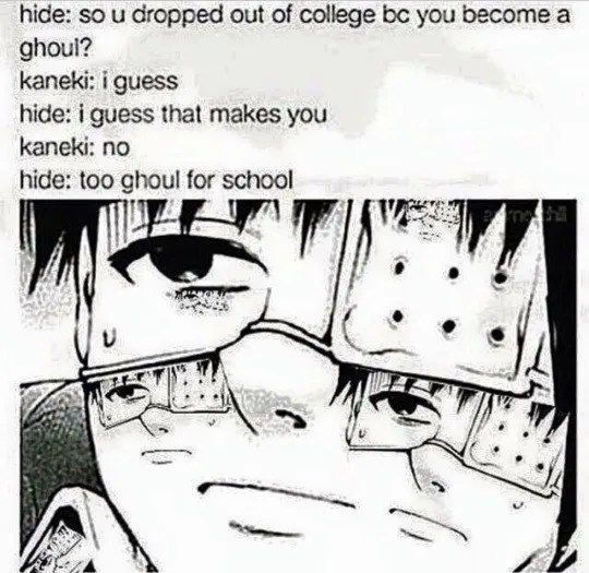 If you find this site serviceableness, please support us by sharing this posts to your preference social media accounts like Facebook, Instagram and so on or you can also Save this blog page with the title Kaneki Funny Memes by using Ctrl + D for units a laptop with a Windows operating system or Command + D for laptops with an Apple operating system. If you use a smartphone, you can also use the drawer menu of the browser you are using. Whether it's a Windows, Mac, iOS or Android operating system, you will still be able to bookmark this website.